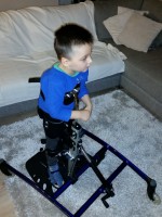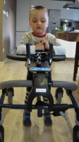 Chodítko mustang od R82 - Mustang je chodítko, které dětem zajištuje oporu při chůzi. Mustang nabízí excelentní a pohodlnou oporu horní cásti trupu uživatele a současně udržuje pánev dítěte mírně fixovanou. Vzpřímená, mírne nakloněná poloha stimuluje k chůzi a umožnuje dítěti se zapojit do denních aktivit. Chodítko Mustang je určeno napr. pro děti s mozkovou obrnou, které mají problém s udržením rovnováhy a zhoršenou motorickou funkcí. Mustang je vyvinut jako chodítko umístěné před uživatelem, ale může být použito i za uživatelem v závislosti na jeho schopnostech. Chodítko používáme i jako stojan, Tommy je v něm dobře zafixovaný.